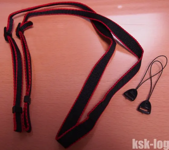 以下はストラップ本体とコンデジ用の吊りひもです。これを使う場合は300g以下のコンデジに使用するようにとの記載がありました。