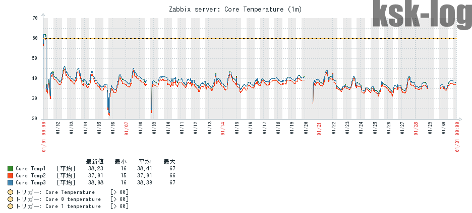 Zabbixで3か月の温度推移調査(Linux自作PC)