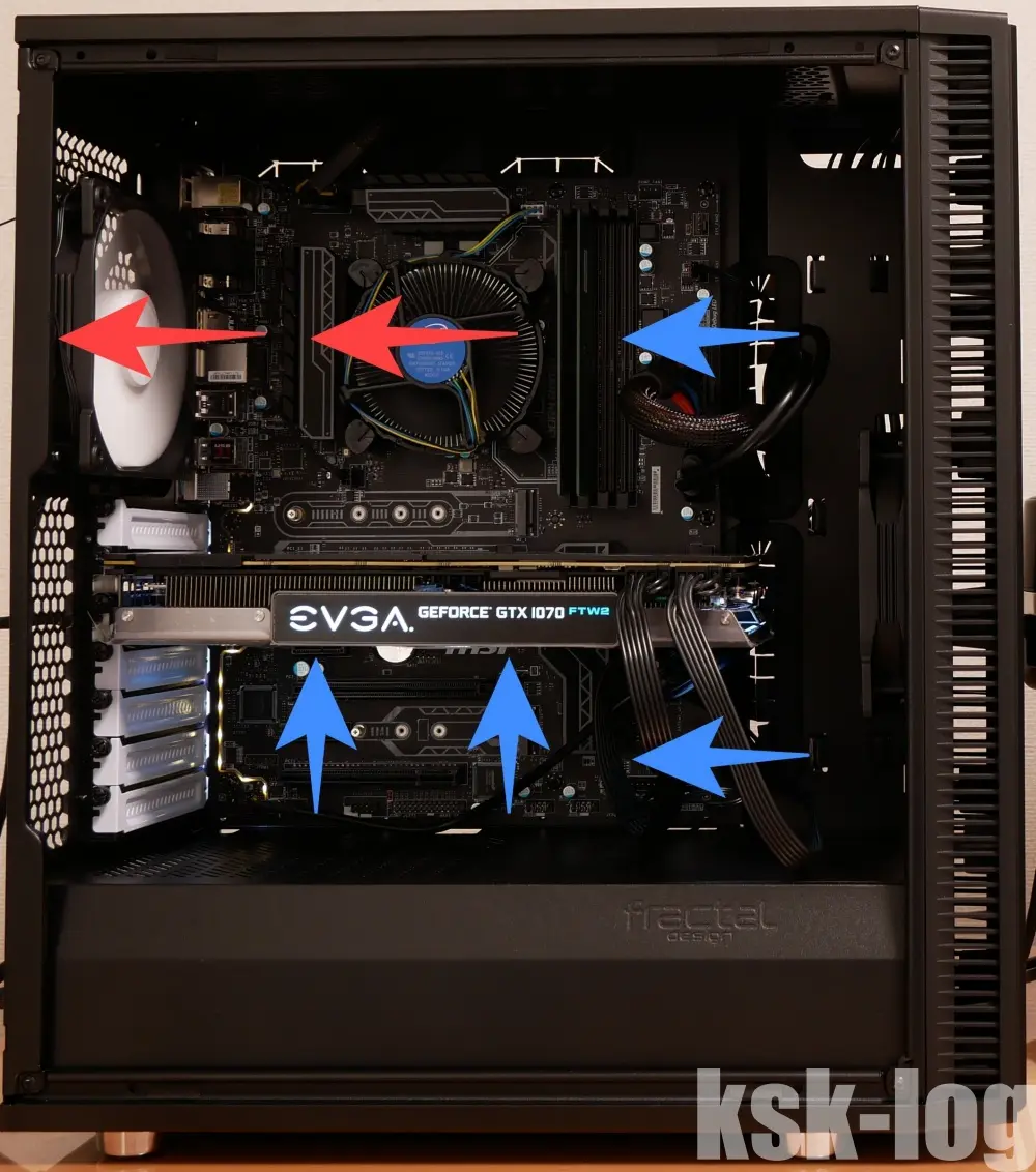 - CPUクーラーがサイドフローでないので、エアフローの流れが乱れている可能性がある