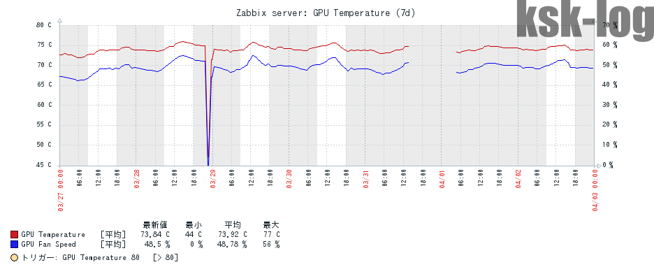 - Zabbixで2日分のCPUとGPUの温度・負荷を確認