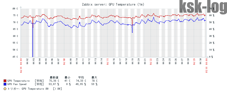 - Zabbixで1か月のCPUとGPUの温度・負荷を確認