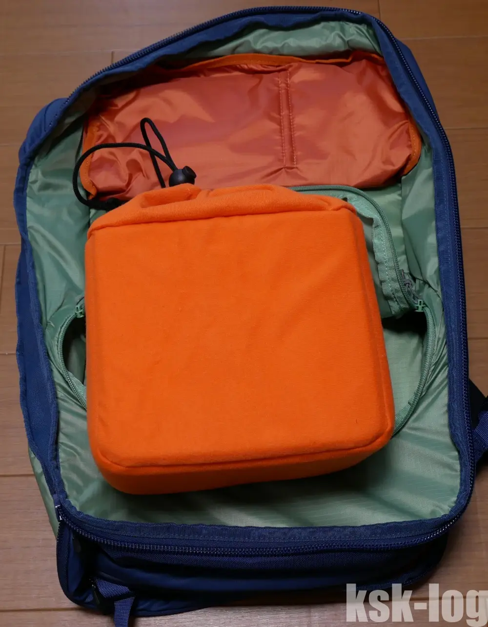 事前情報にあった、クライムコンパートメントのシューズコンパートメントにミラーレスカメラが収納できそうということで自分でも確かめてみました。