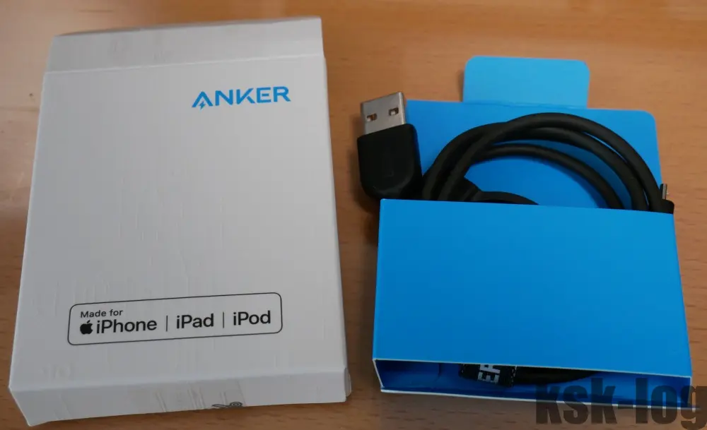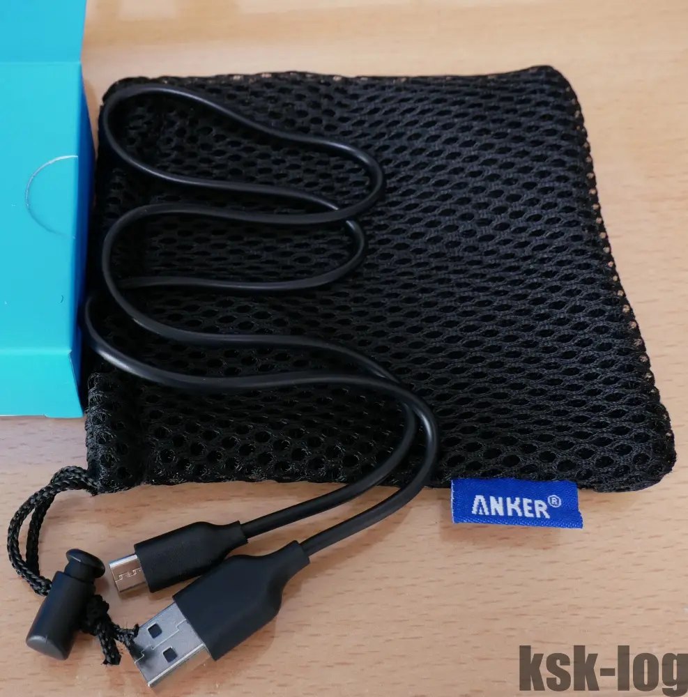 Ankerの特徴である、白地に黒と青の文字が入った箱に入って届きました。