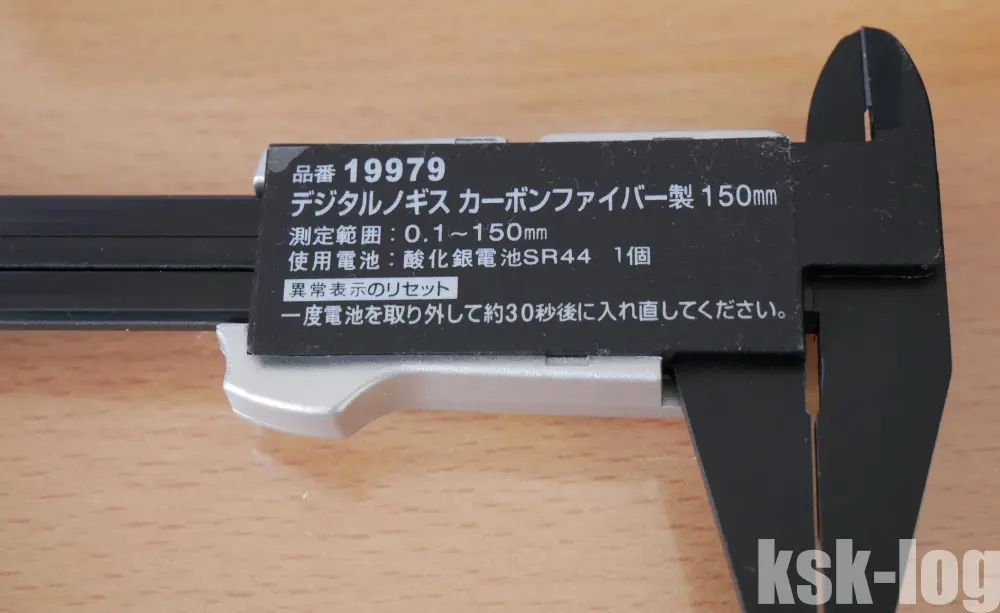 以前の記事でも記録していましたが、改めてシンワ デジタルノギスカーボン 150mm 19979のスペックを記入しておきます。