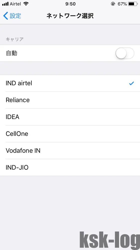 どうやらキャリア設定を自動ではなくて、IND airtelとして明示的に指定してやる必要があるみたいです。