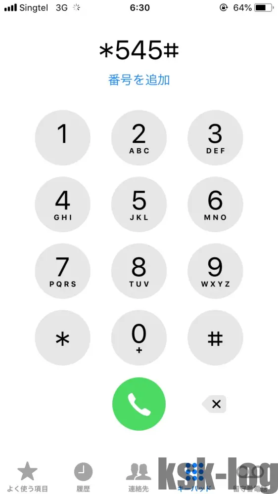 以下のスクショでは、*545#へダイヤルして自分のSIMカードの電話番号を取得している様子となっています。