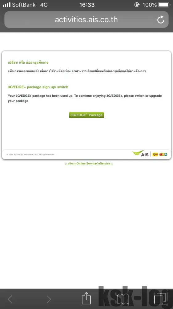 ブラウザではパッケージの期限が切れたので、別のパッケージを使うか、チャージを行うようにというような記載のページに飛ばされるようになります。
