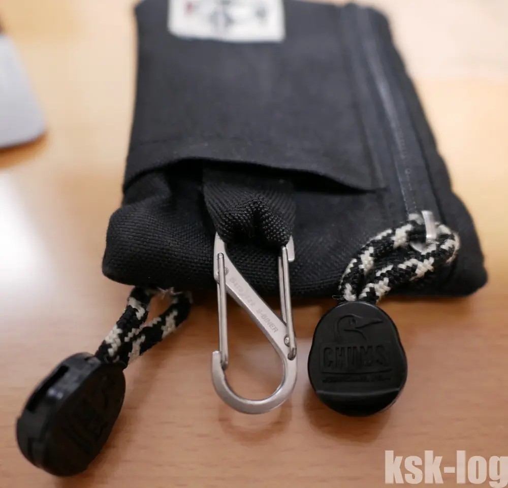常に持ち歩いているキー&パスケースのChums Eco Key Coin Caseにつけるにも小さすぎますね。