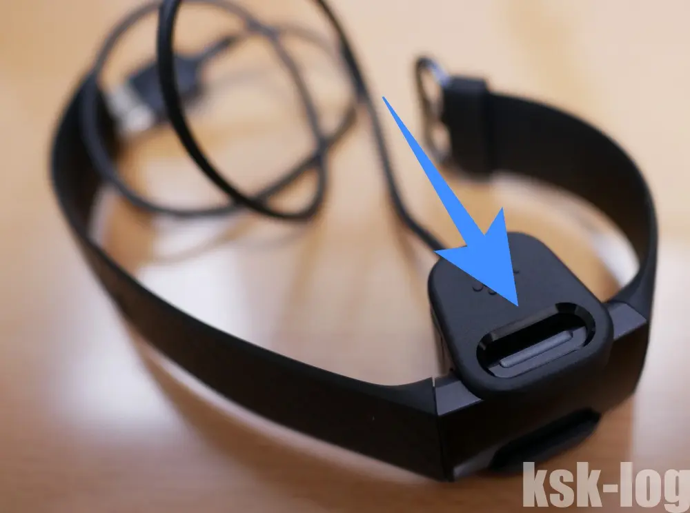 Fitbitへ保護フィルムを装着した状態で、充電クリップを装着してみます。