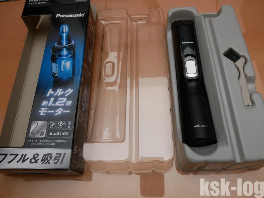 エチケットカッターはPanasonicとPhilipsの2社が色々なモデルを出していますが、今回は吸引や洗浄など便利な機能のあるPanasonicのER-GN70-Kを購入することにしました。