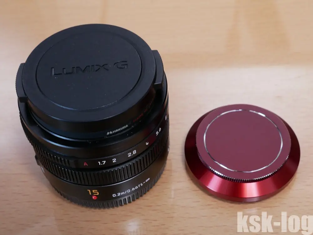念のためキャップがセットとなっているもの購入しました。なお、LumixG8とLeica15mmは両方ともブラックで利用していることもあり、レンズフードもブラックにするつもりだったのですが、生産が終了しているようなので、生産が継続していてブラックと合いそうなレッドを購入しました。