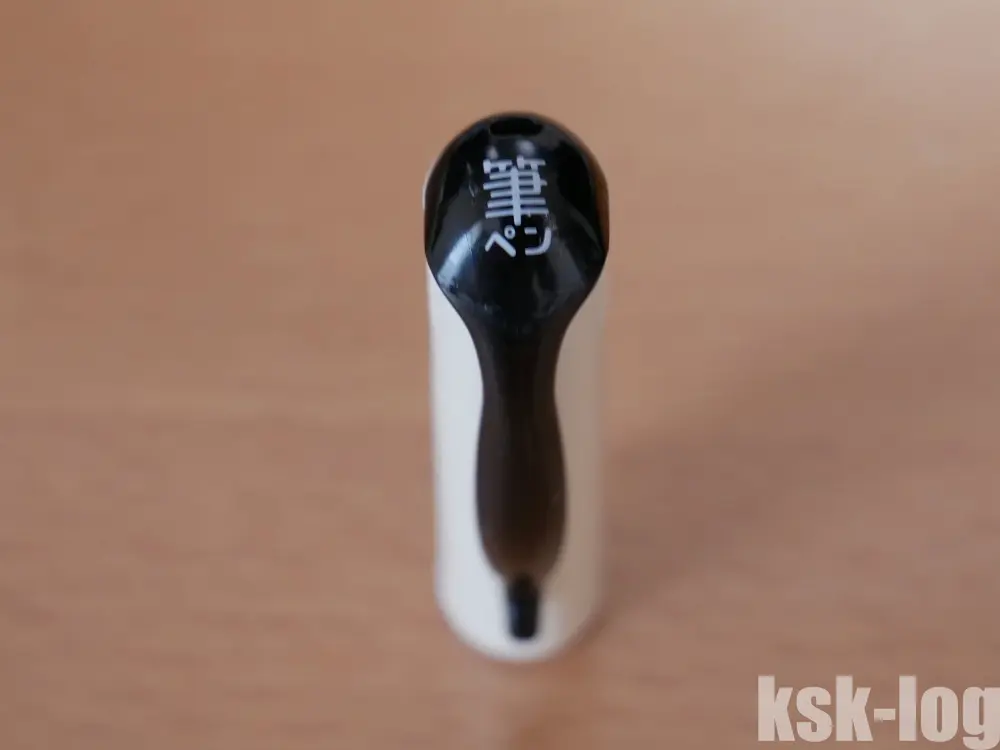 キャップの頭に「筆ペン」と記載があるので、他のサインペン・ボールペンと縦に並べたときに区別がしやすいようになっているようです。