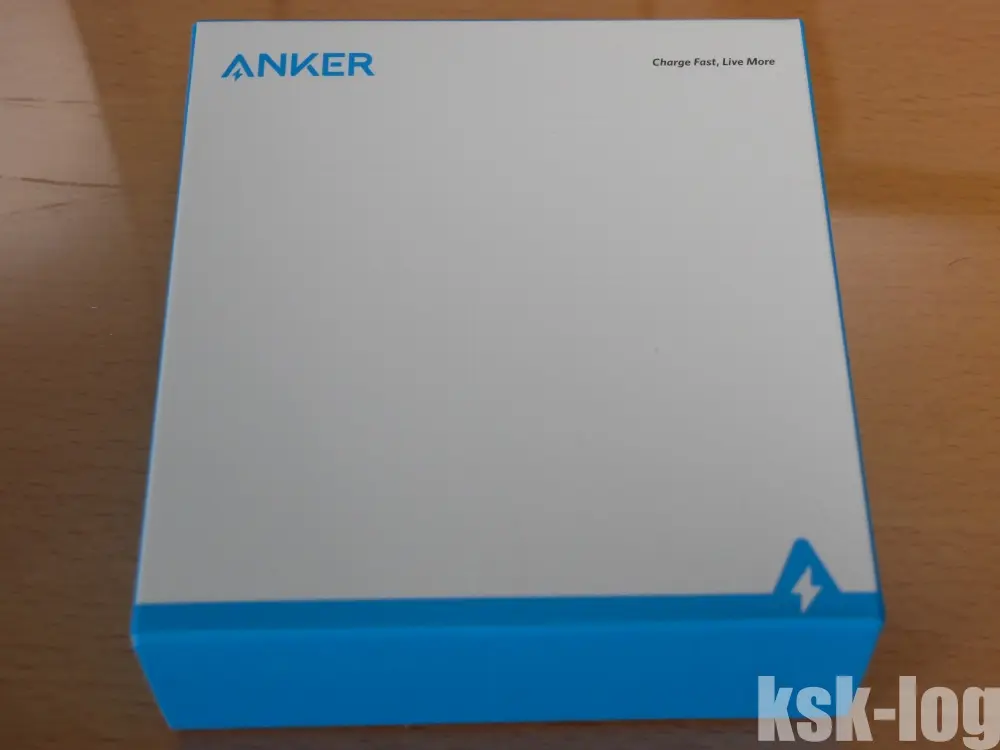 外箱はAnkerのいつもの白と水色の箱となっていました。