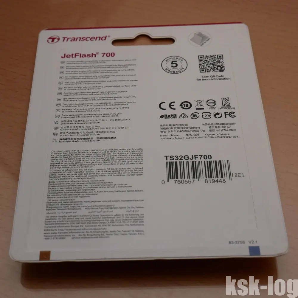 フラッシュメモリ系では定番のTranscendのUSBメモリであるJetflash700を購入したので記録しておきます。