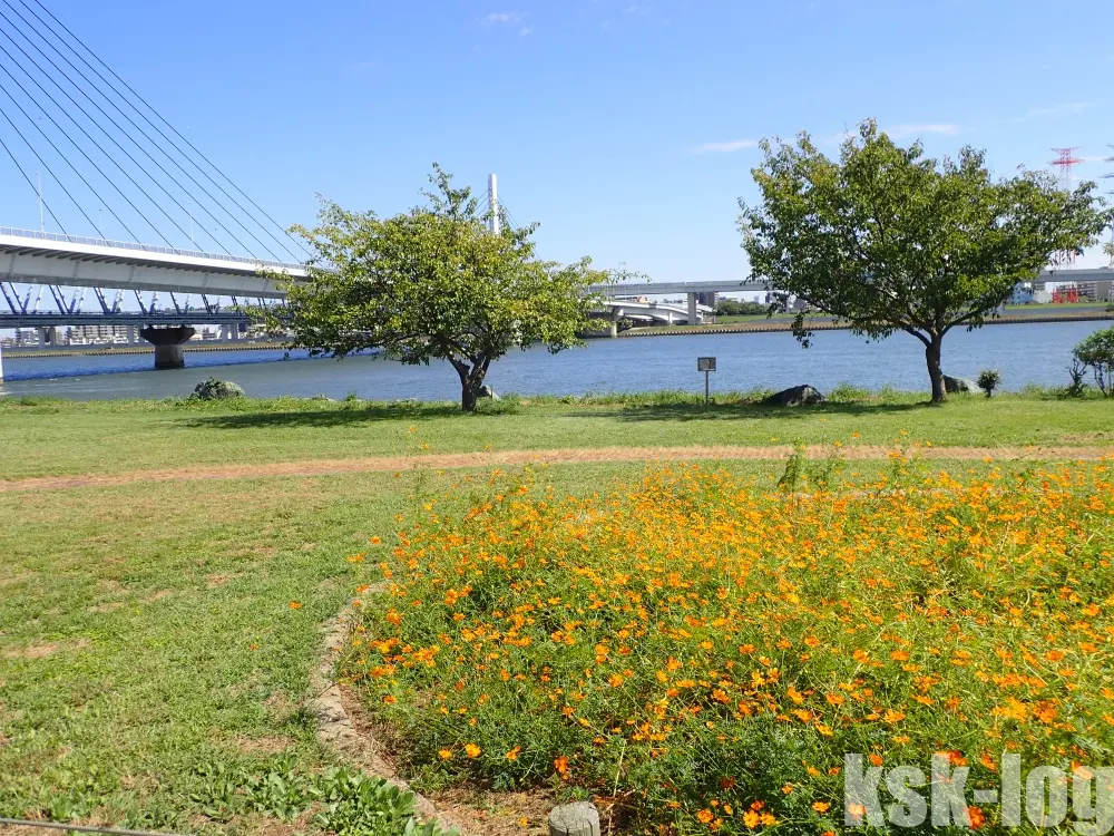荒川河川敷では常にいろんな花が花壇に植えられている感じがします。