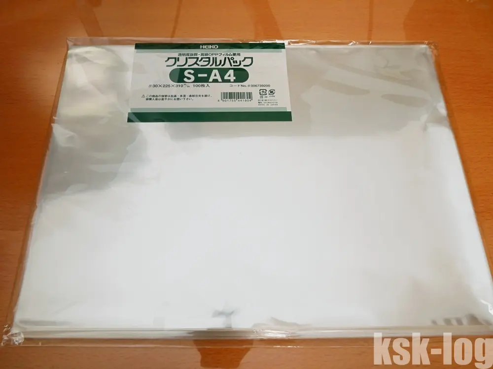 利用しているのはヘイコー 透明 OPP袋 クリスタルパック A4 100枚 S-A4となります。