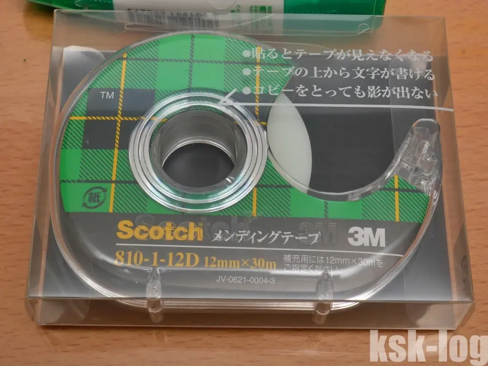 利用しているのは3M 12mmx30m ディスペンサー付き 810-1-12Dで、なぜかディスペンサーなしよりも販売価格が安いです。