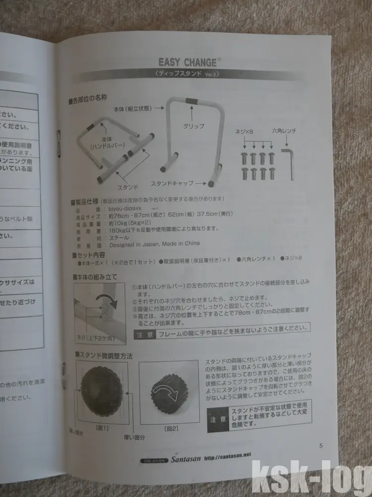 今回は価格が安いわりに耐荷重の情報などもそろっているEasy Changeのディップススタンドを購入することにしました。