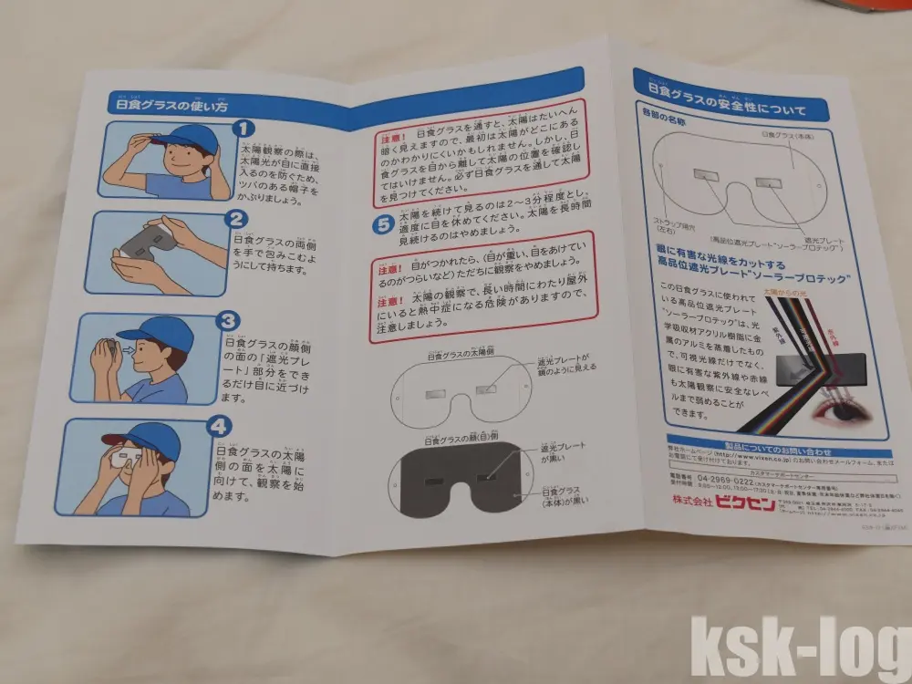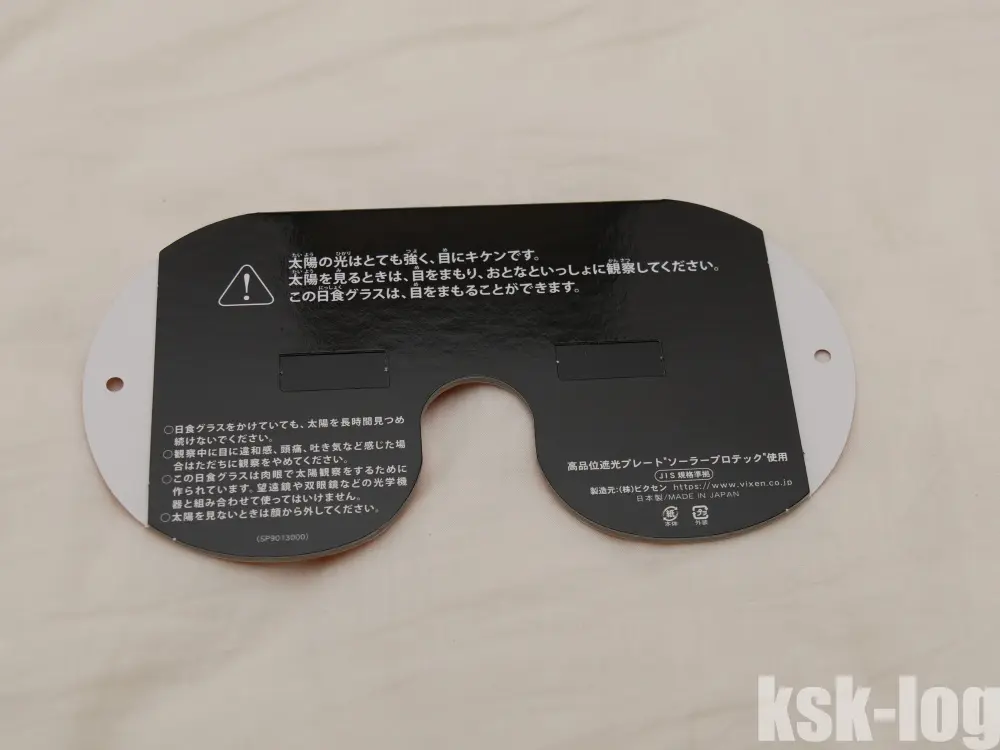 本体と日食を見る際の注意事項がかかれた説明書の2点が入っていました。