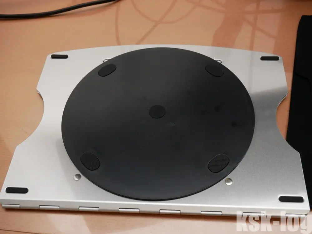 裏側のラバーとスタンドは回転可能なのでPCを載せている状態でも左右の確度の微調整がきいて便利です。