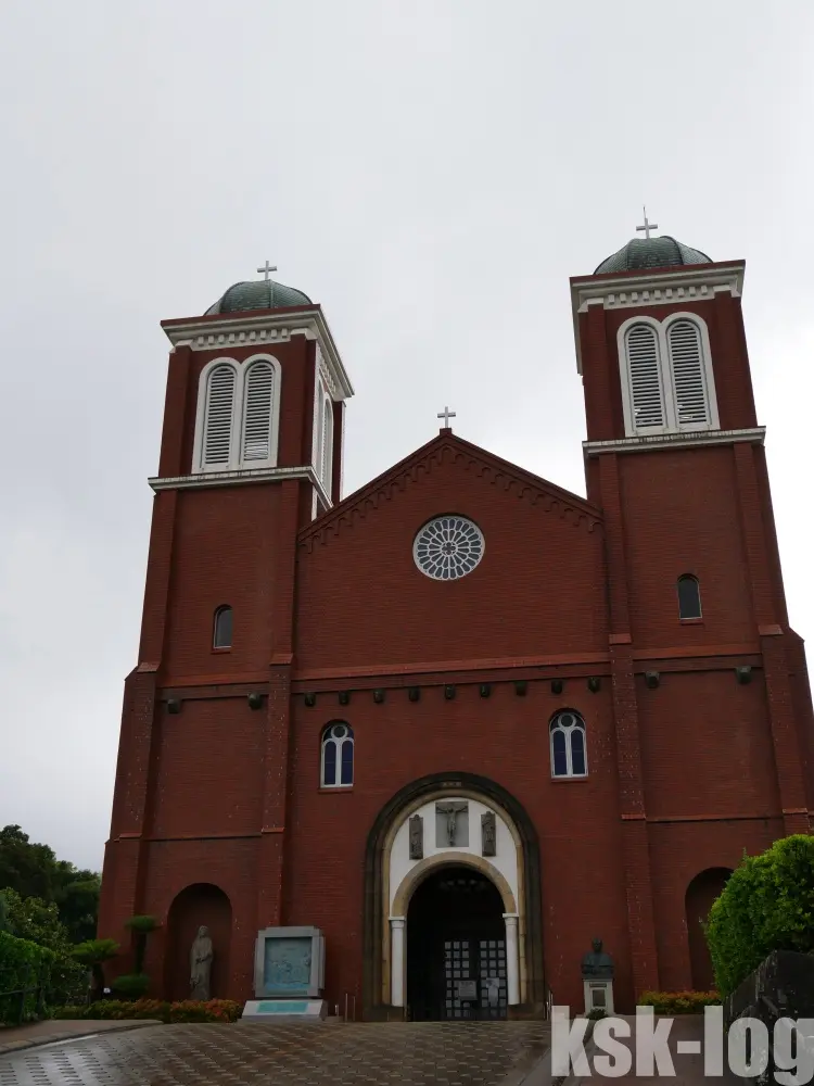 平和公園では一番有名であろう平和を祈る像を見て屋根のあるところで雨宿りをして、浦上天主堂へ向かいました。