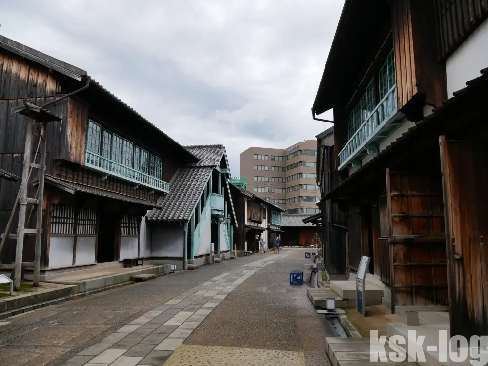 この小さい場所に当時の建物と復元された建物が並んでおり、建物の中で色々展示しています。