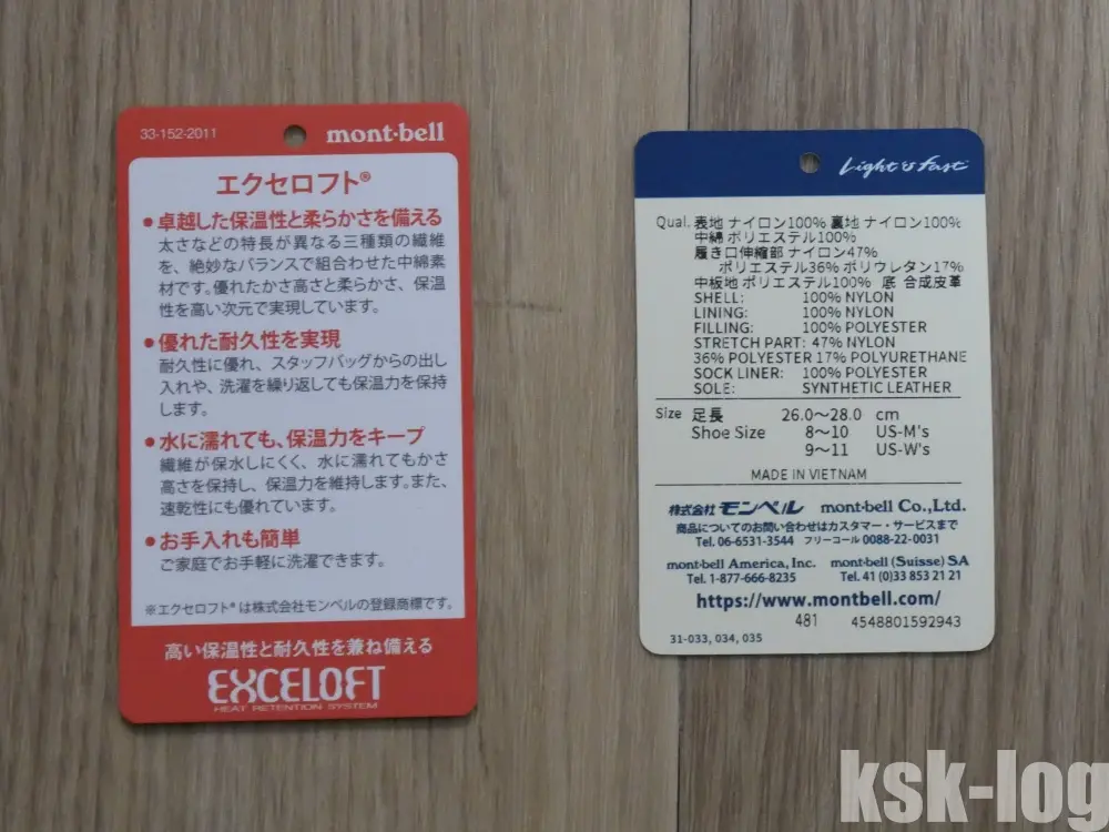 - 寒い室内用にモンベルのエクセロフトキャンプシューズを購入