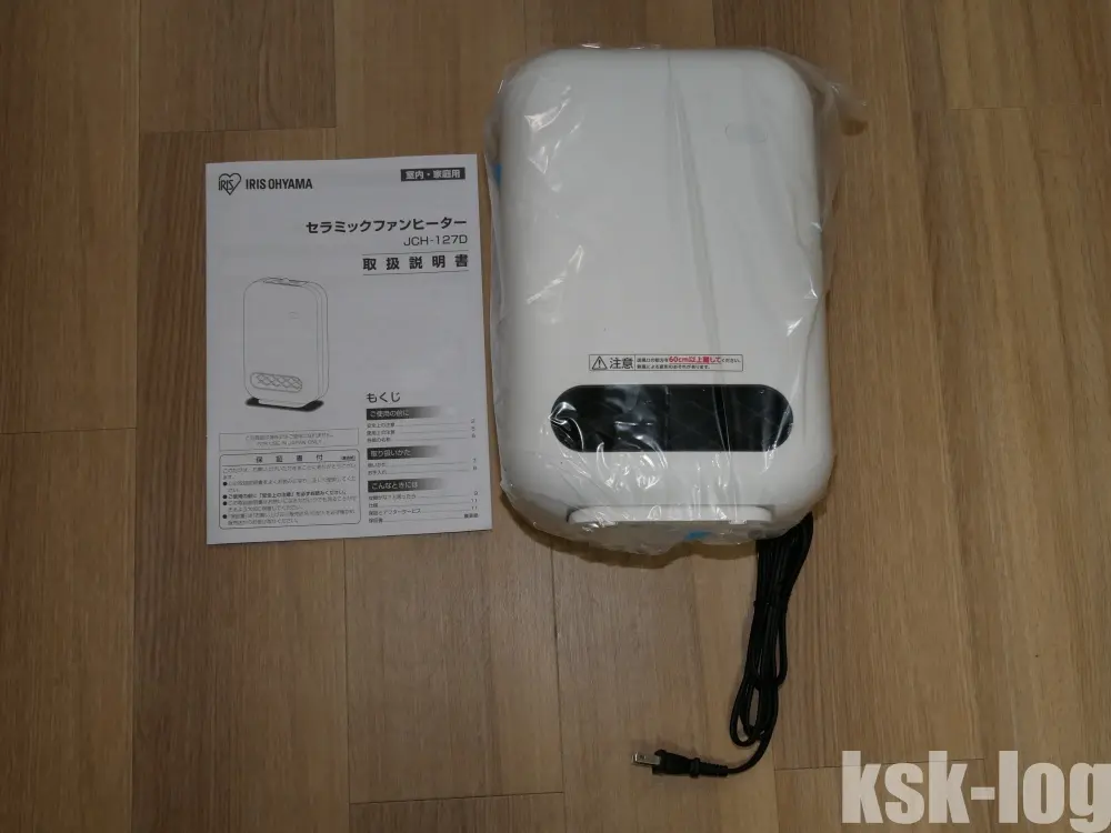 購入したのはアイリスオーヤマのセラミックファンヒーターJCH-127D-Wとなります。