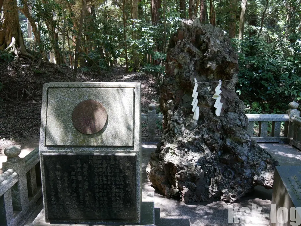 そして道を戻って別の道に進むと要石があります。名前に反して小さい印象を受けるのですが、どういった経緯で要石とされているのか気になるところです。ちなみに鹿島神宮の要石と合わせて凹凸が合うということです。