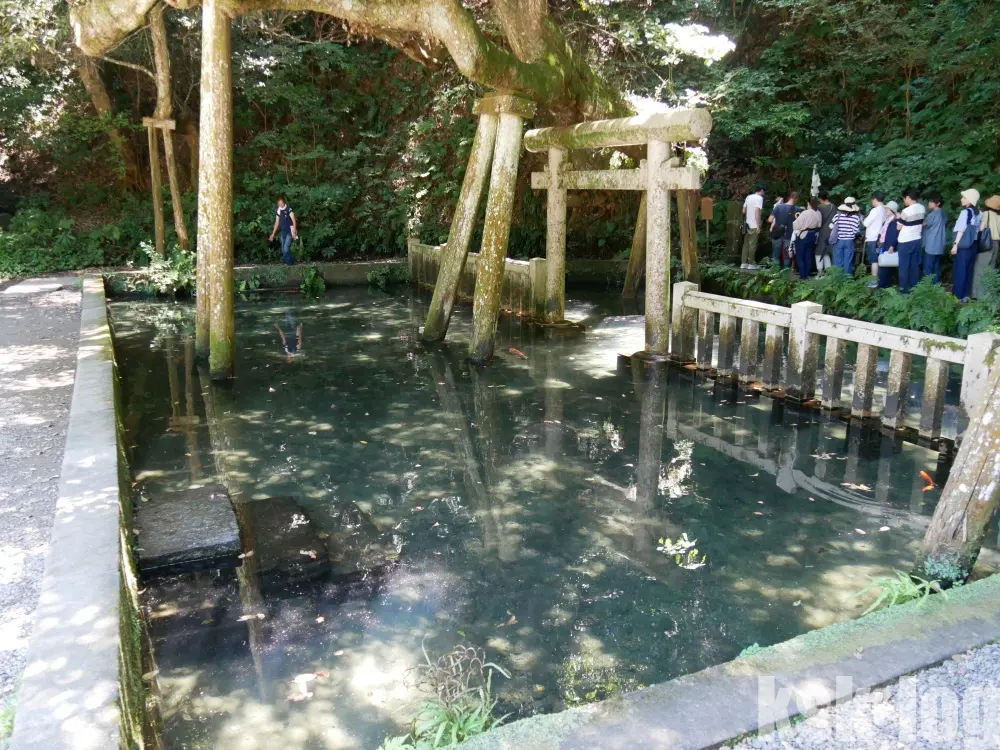 息栖神社の特徴として、入口の鳥居の二の鳥居から常陸利根川の方に歩いていくと川に面した一の鳥居と忍潮井があることが挙げられます。