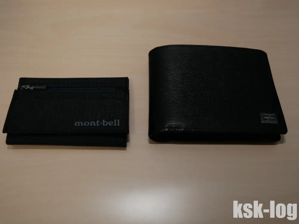 これまで使っていたポーター カレント二つ折り財布と並べてみました。非常にサイズが小さいことがわかるかと思います。