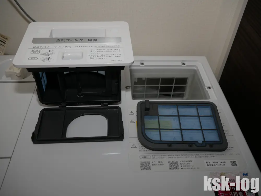 ちなみにメンテナンスが必要なのは以下の乾燥フィルターと糸くずフィルターの3か所ですね。
