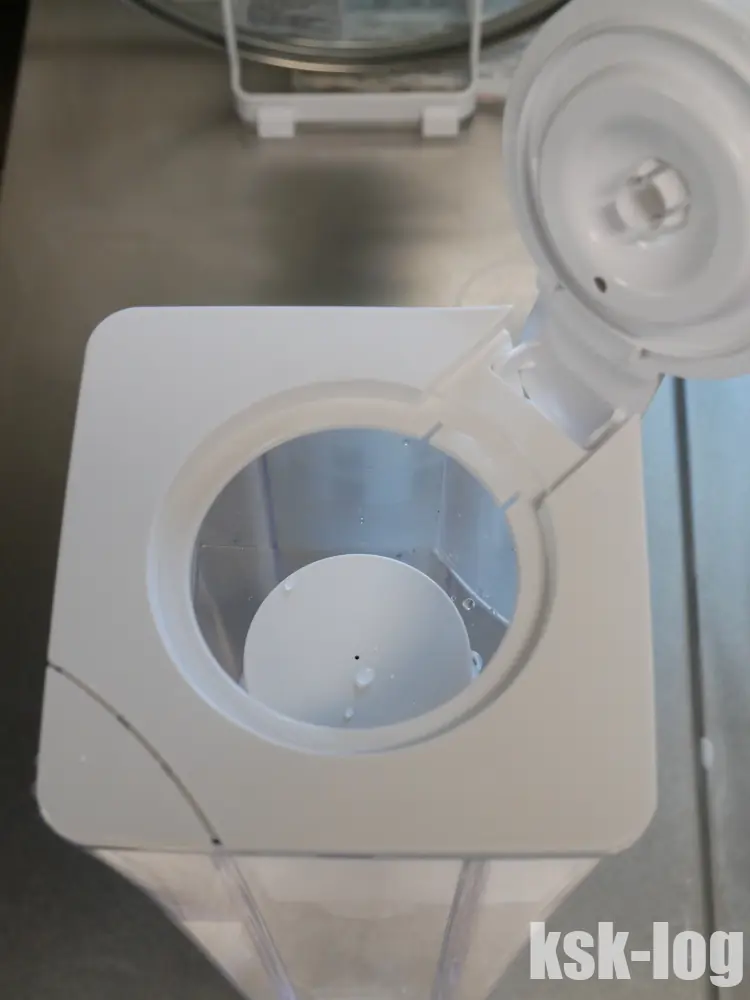 なお、冷蔵庫に入れる際には注水直後だとろ過が進んでおらず容器が斜めになって水がこぼれる恐れがあるので注意がひつようです。1-2分待ってから入れる必要がありそうでした。