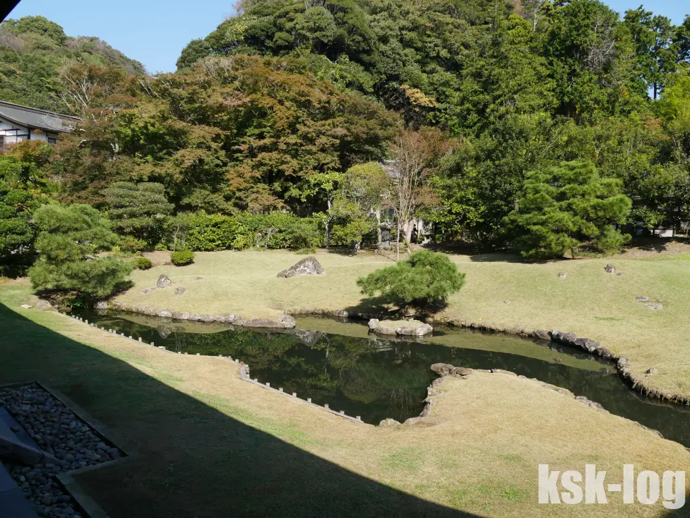 こちらは庭園の写真。風入れの展示に使われている宝物館は結構大きな建物となっています。階段は木製で靴下だと滑りやすいので注意しましょう。
