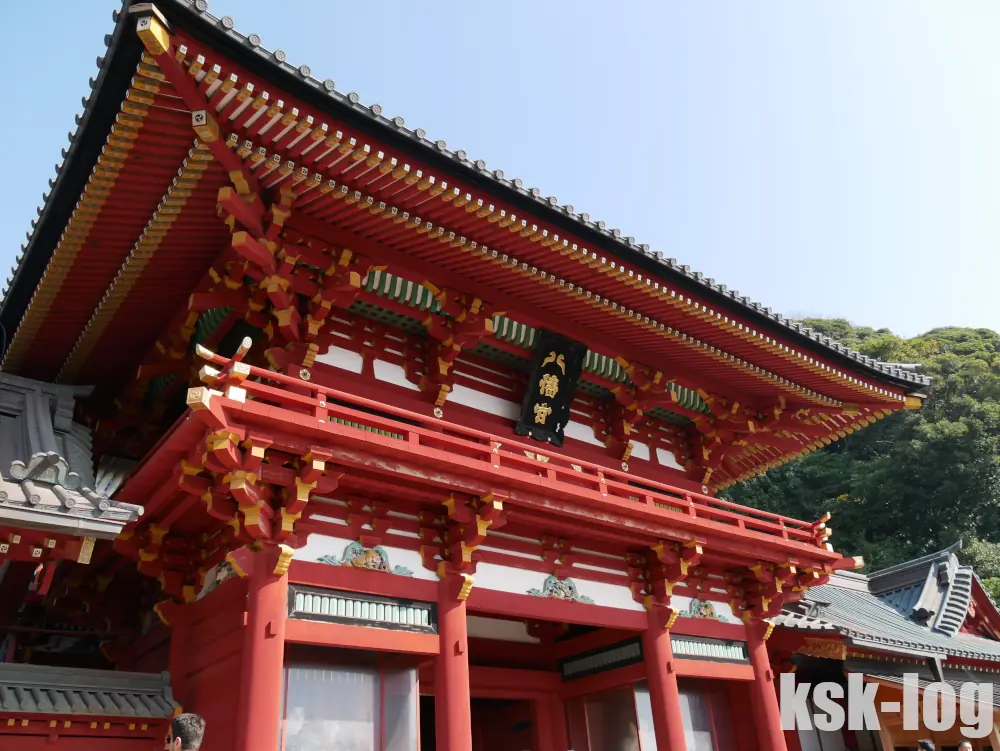続いて建長寺から徒歩で鶴岡八幡宮へ向かいます。経路的には裏手から入る形になりますね。こちらは大混雑で、中央に並んでのお参りは諦めました。