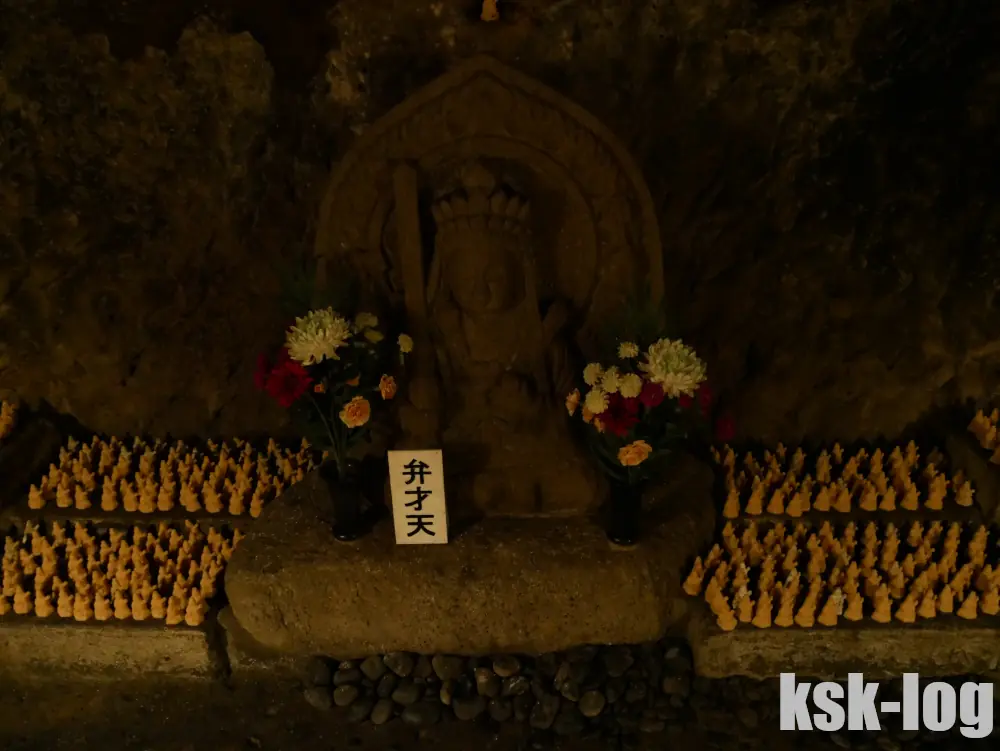 弁天窟という洞窟の中に石仏が多く置かれており、弁財天もまつられています。通路の高さが低いので頭上注意です。