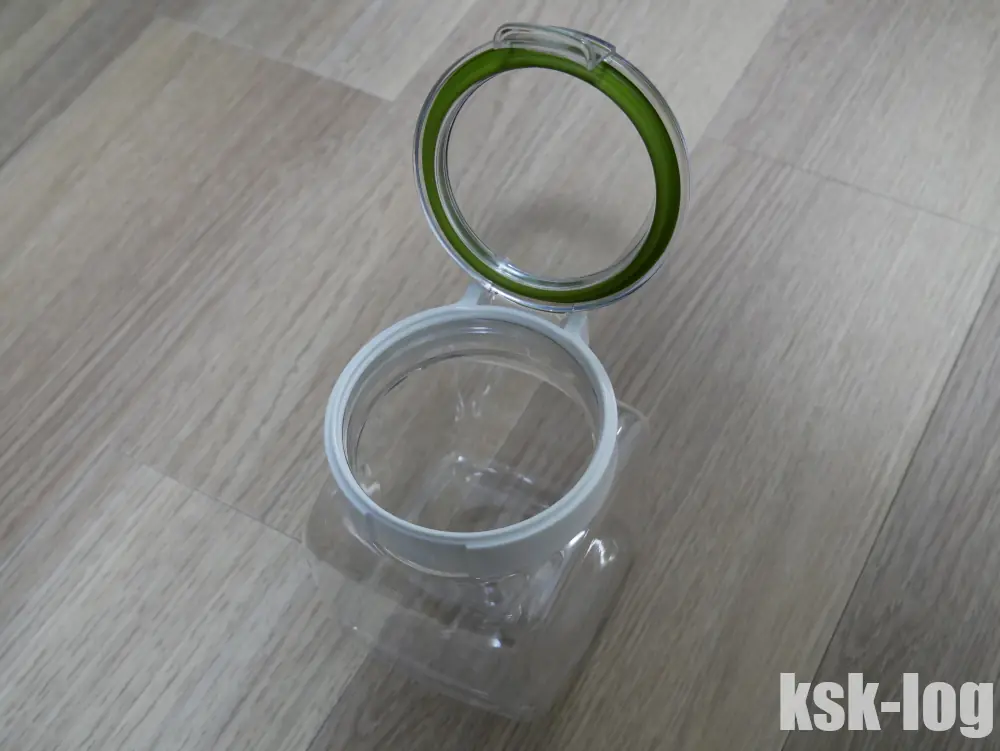 外観は非常にコンパクトな樹脂製の容器で、その割に口が大きく使い勝手がよさそうという印象です。