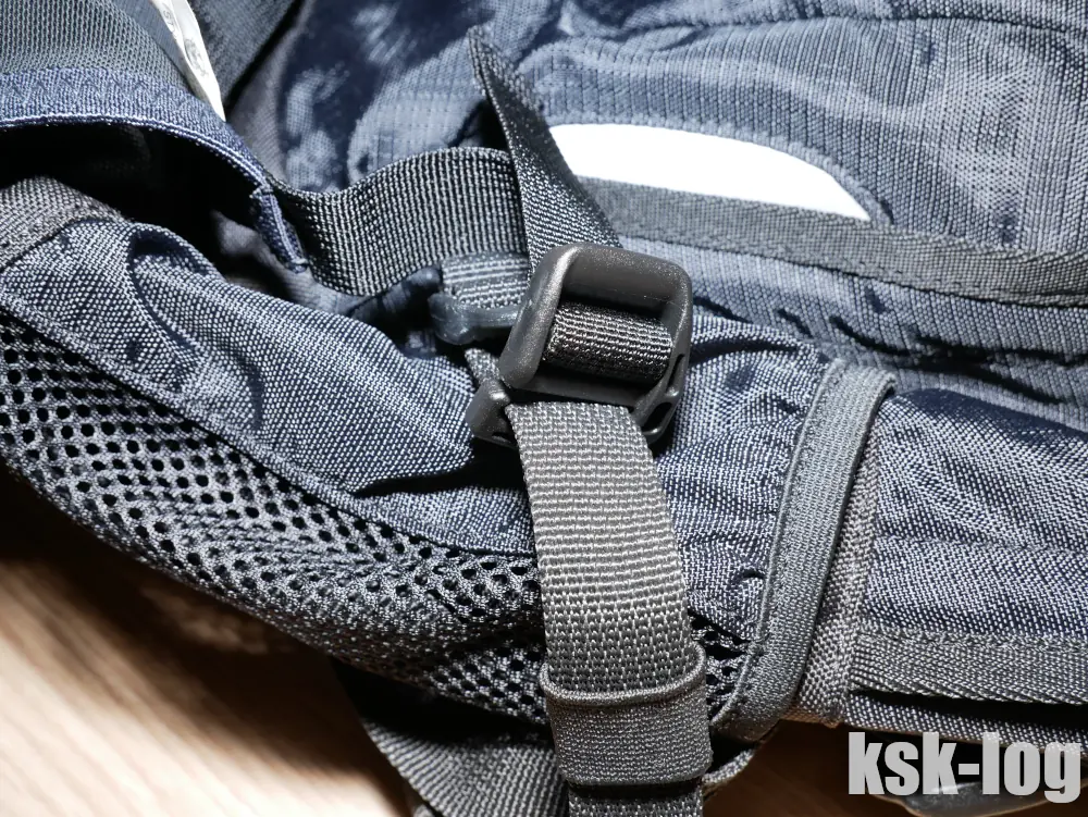 なおサイドテープを使う関係上、上側のサイドテープがリュックの口を開ける際の邪魔にもなります。なので利用の際には要注意です。