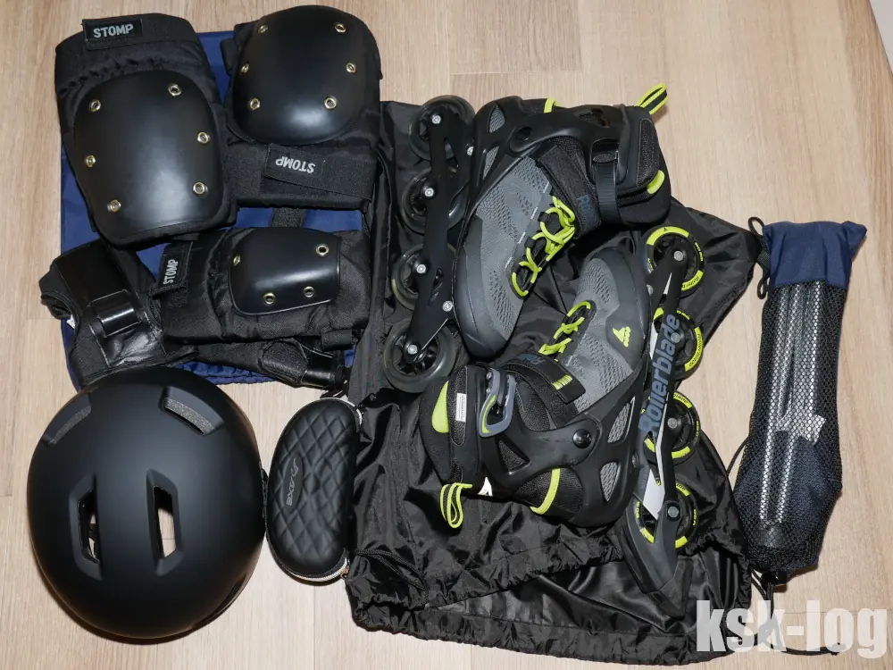 私が普段河川敷にインラインスケートの滑走に行く際にはリュックにヘルメットとプロテクター、ブーツケースにインラインスケートを入れて持ち運んでいます。