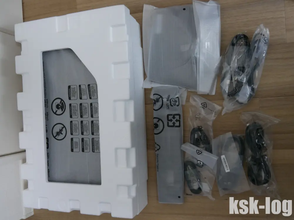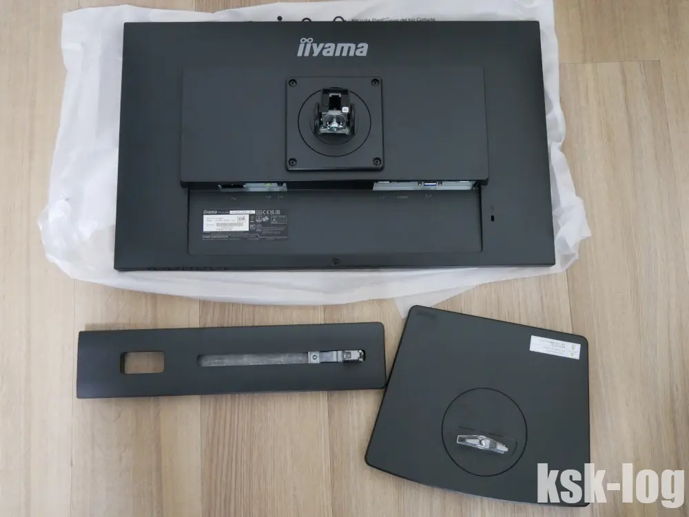 本体パーツを組み立てていきます。液晶、スタンド、スタンド台の3つのパーツから構成されています。
