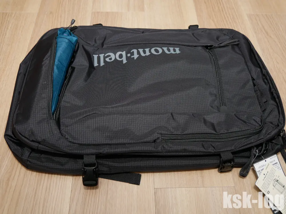 底部の折り畳み傘収納はモンベルの折り畳み傘がジャストサイズで、それより大きいユニクロのものは入りませんでした。入れる傘の大きさに注意です。