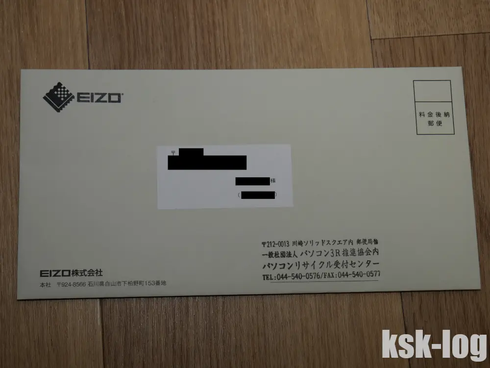これで私の場合は4日後にEIZOより普通郵便が到着しました。