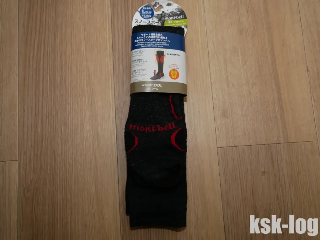 またMicoの同じソックスを購入するのもよいのですが、他の薄手のソックスだと耐久性や着用感はどのくらい変わるのか気になったので、試しにモンベルから出ている薄手のスノースポーツ用ソックスを購入してみることにしました。