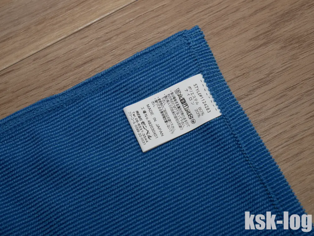 広げてみるとこんな感じです。マイクロファイバーのパイル地のタオルという印象を受けます。