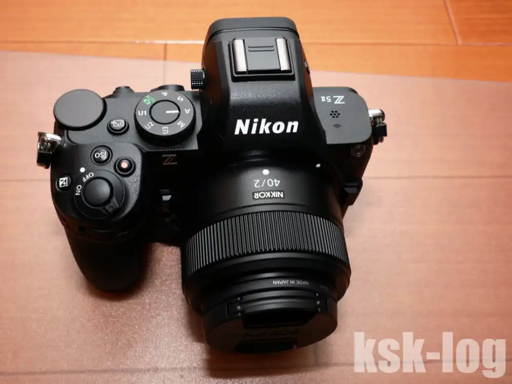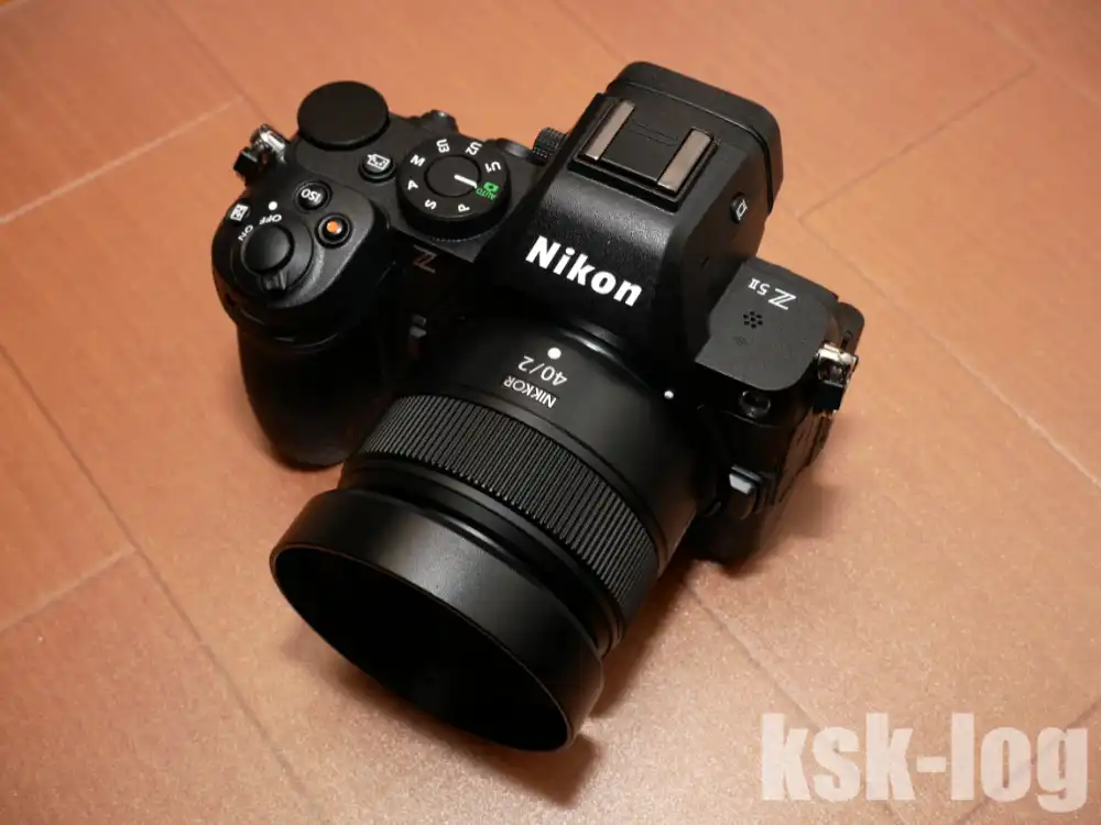 以下がレンズフードを使っていない状態で、Z5IIにZ40mmを取り付けた外観です。